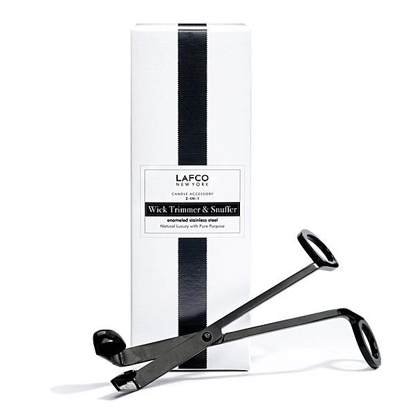 LAFCO Candle Wick Trimmer & Snuffer is a 6 inch long 2-in-1 enameled stainless steel candle accessory exclusively designed by LAFCO New York. This luxurious, thoughtfully crafted wick trimmer simultaneously trims and snuffs the wick with a special blade and stores the trimming until it can be easily disposed of.