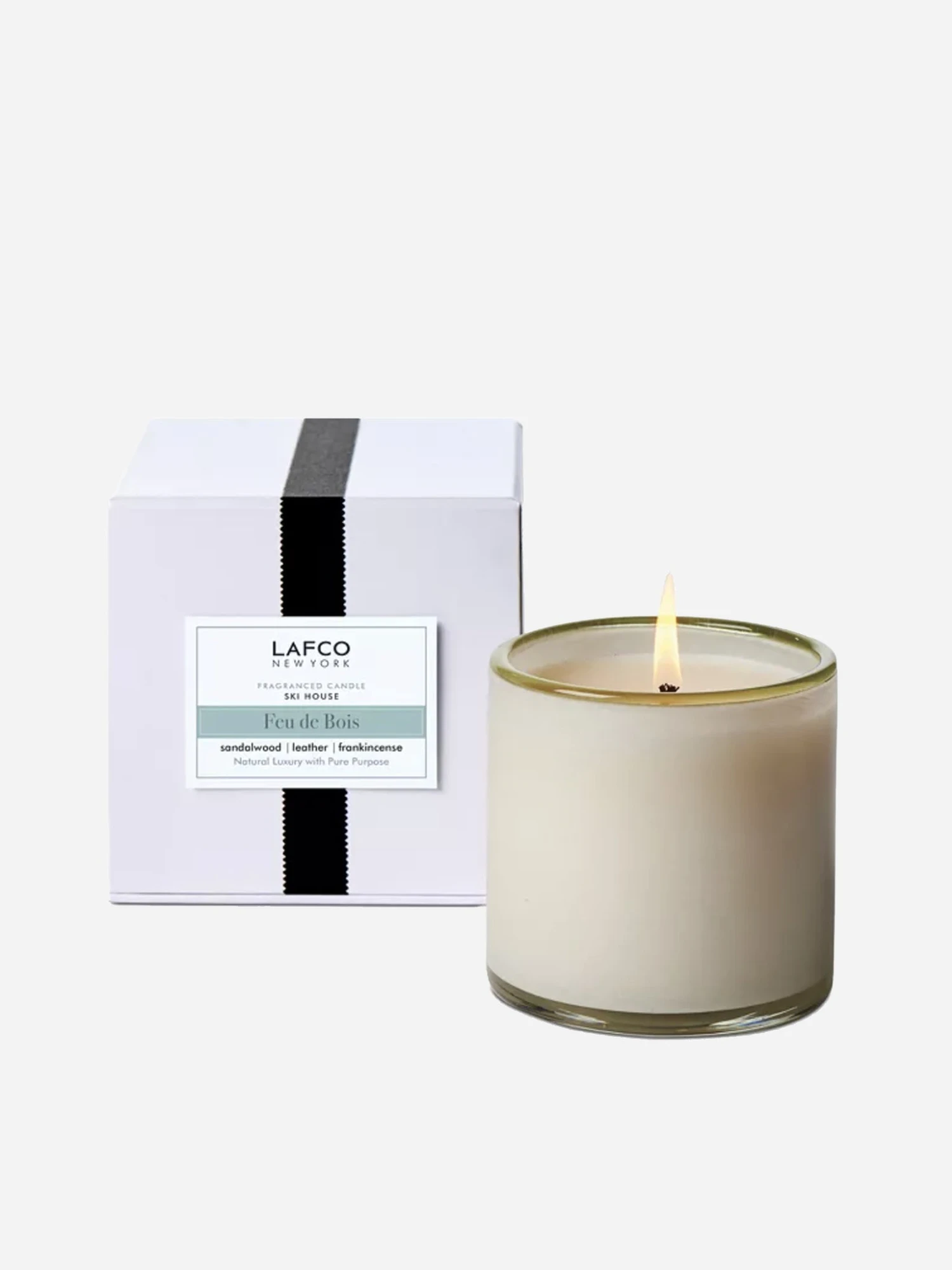 Soy-blend candle with notes of burning wood and mountain spruce.