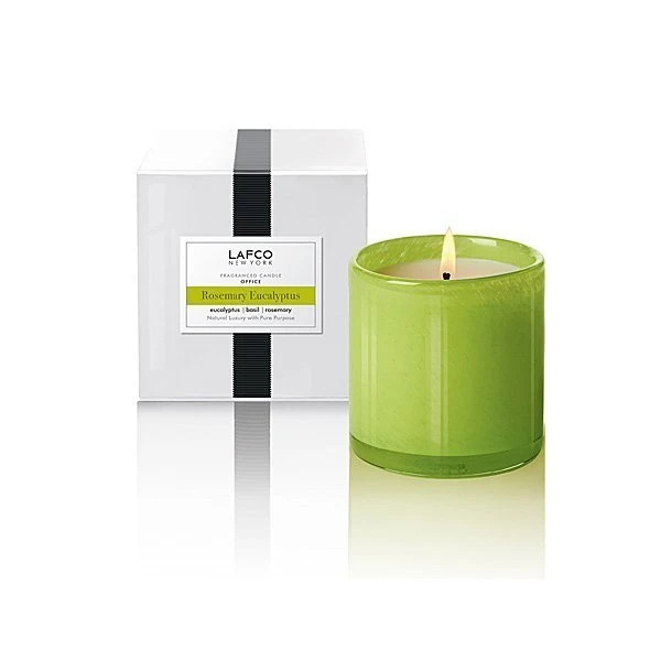 LAFCO Office (Rosemary Eucalyptus) Classic Candle is a mix of invigorating rosemary and eucalyptus, complimented by wild min to encourage sharp thinking and wakefulness. After hours in front of the computer monitor or checkbook, this fragrance will keep you inspired and clearheaded.