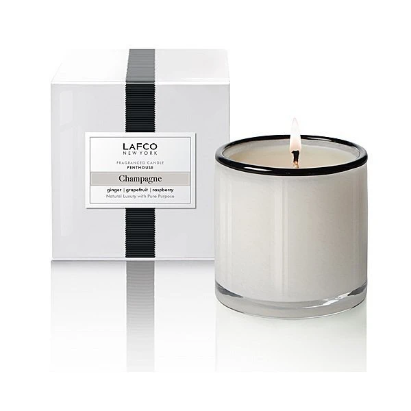 LAFCO Penthouse (Champagne) Signature Candle is like the sparkling scent of the perfect party. Infused with notes of ginger, raspberry and pink grapefruit, fresh and bubbly, it shimmers like the view of a thousand city lights at dusk from your penthouse in the sky.