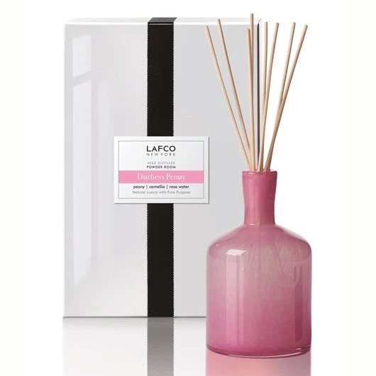 LAFCO Powder Room (Duchess Peony) Diffuser is the soft round fragrance of peony in full bloom, combined with camellia and just a hint of rain mist and cassis to create a floral that seems to embrace a brand new new morning in spring.