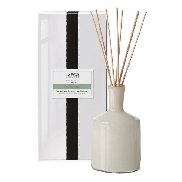 LAFCO Ski House (Feu de Bois) Small Diffuser, kick the snow off your boots and find a spot near the roaring fire. It crackles and spits as it settles down for its long, slow shift, but its smoky remains will continue to comfort long after its final embers have grayed. Smoky frankincense blankets cozy notes of leather, sandalwood and pine.